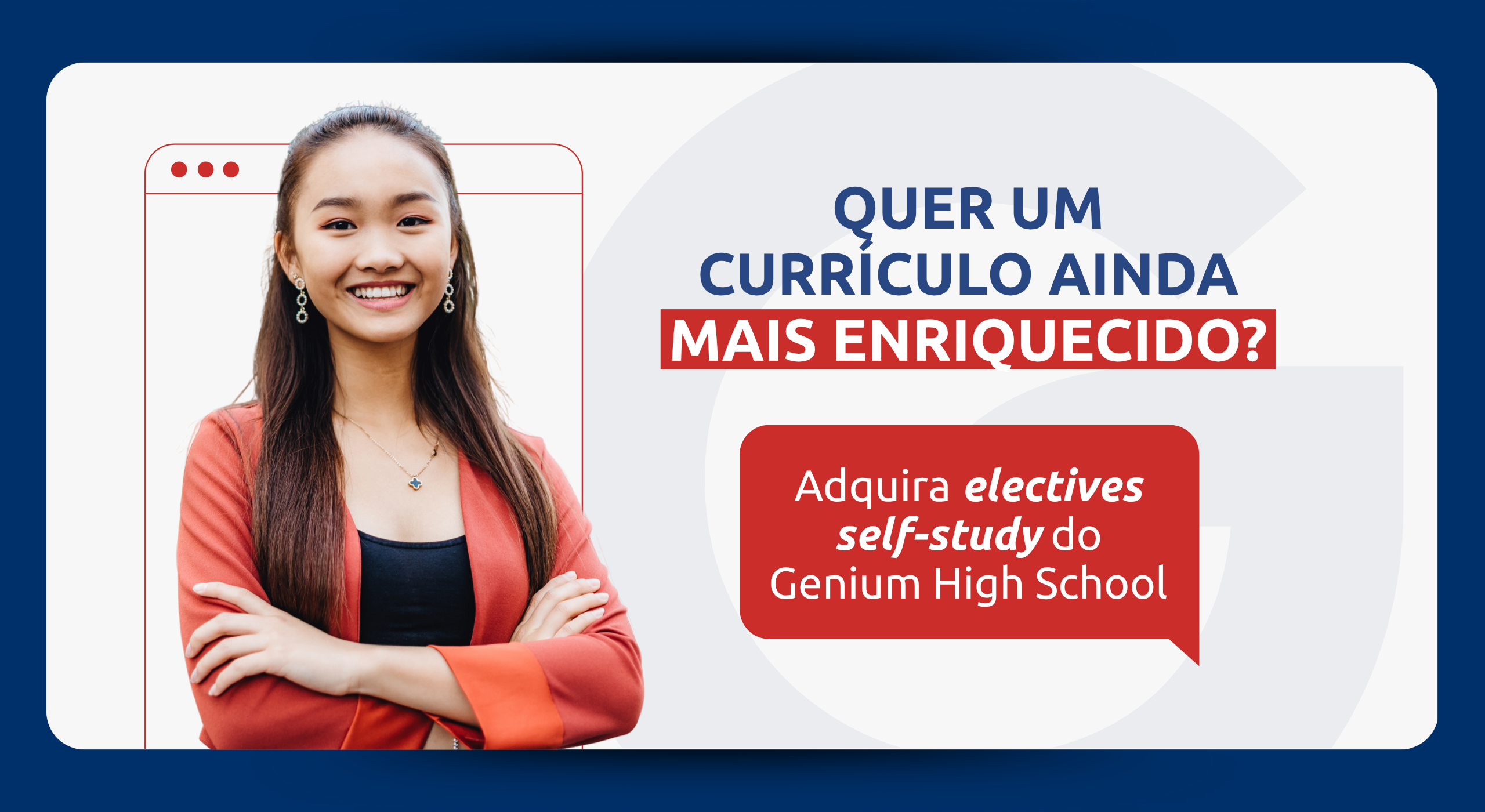 Com as electives da Genium, você pode escolher as matérias que mais gosta dentre 43 opções disponíveis e ingressar a qualquer momento! Tudo isso estudando no seu ritmo e aproveitando a mesma tecnologia, conceitos e conteúdos dos EUA!